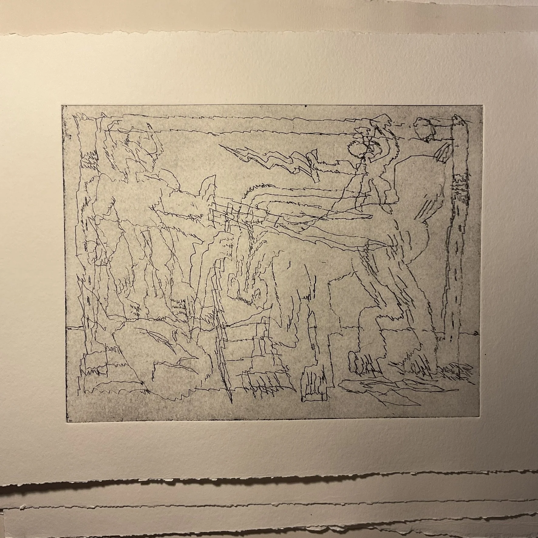 A series of Hard Ground, Acquatinta, and occasionally Soft ground etchhings on zinc I have worked on in 2023 - 2024.